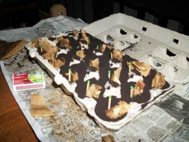 Tendrá una superficie de absorción para coger la llama y el iniciador de fuego va, y que es donde los filtros de café mano. Rasgar en pedazos, twist y EM se pega en la hueveras. También poner partidos en solo de yapa y añade seguridad.