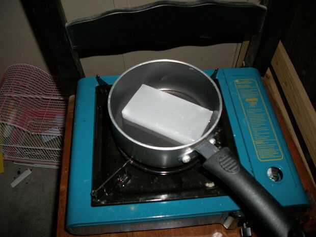 Por lo tanto, cuidadosamente derretir la cera, asegurándose de que no se fume ni hervir! Pequeñas llamas.