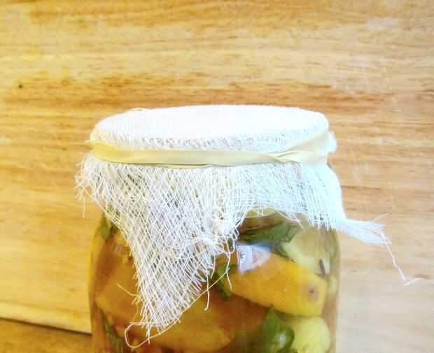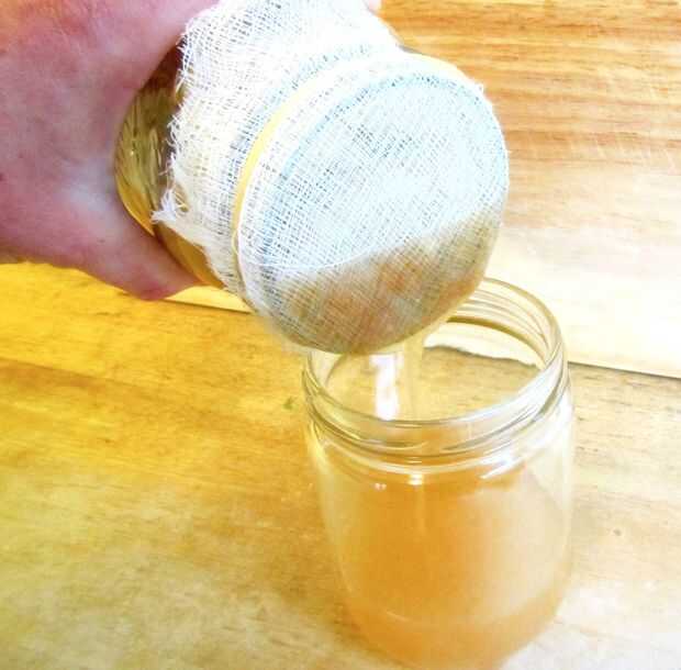 Coloque dos cuadrados de tela sobre la boca de la jarra. Estire y asegure la tela con una banda elástica. La estopilla actuará como una barrera, permitiendo que su para recoger la sidra de fuego sin que ninguno de los trozos.