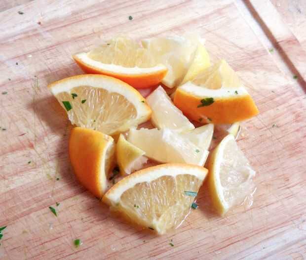 Cuarto y una mitad de sus naranjas y el limón entero. Una vez en cuartos de rodaja cada cítricos hasta que tienen una selección de cuñas de uniforme, cada uno sobre un cuarto de pulgada de grosor. Soltar tus cuñas en su tarro, les empuja hacia abajo con el dedo si es necesario.