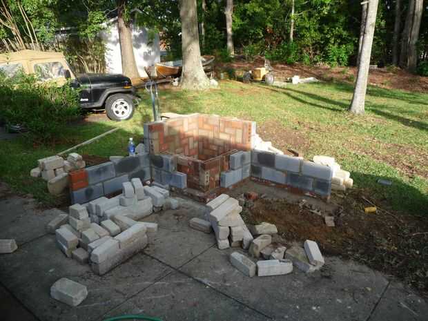 Entonces es sólo una cuestión de poner el bloque en el patrón. Dejé la parte frontal abierta para que tenga un lugar donde reposar mientras estaba poniendo el ladrillo en el interior.