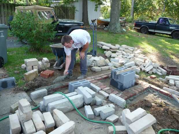 La siguiente fase fue poner el bloque de 4". El ladrillo en la parte inferior se disponen a nivel de la manzana.