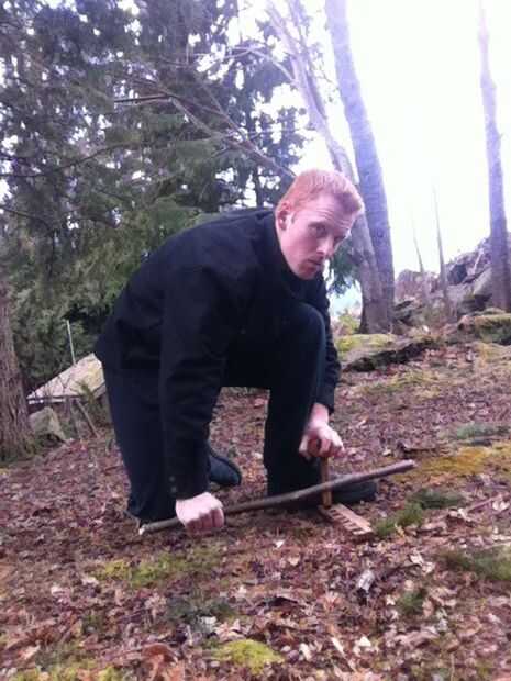Así que si tienes razon mano, tu pie izquierdo va a soporte te está Junta, la placa va sobresalga a un ángulo de 90 grados desde el lado del pie. El taladro va a ser aproximadamente una pulgada lejos del lado del pie. La rodilla derecha va a ser en el suelo y la pierna va a ser en un ángulo de 90 grados de usted está el talón. La razón para ello es crear una línea recta puede mover su arco hacia adelante y hacia atrás y la pierna no será de la forma. Vas a encajar su eje en su proa y coloque el lado aceitado no abajo en su eje. Vas a agarrar el arco con su mano derecha y coge el bloque de la palma con la mano izquierda, coloque el zócalo en la parte superior del eje y bloqueo de su muñeca en su SHIN!! Muy importante, de lo contrario cuando intenta el husillo del taladro será tirarse alrededor y saltando todo el tiempo. OK ahora está en la posición adecuada para perforar.