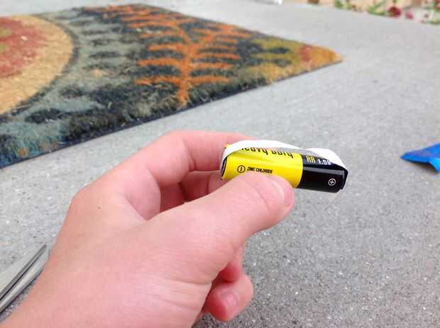 Cinta adhesiva los extremos de la envoltura hacia los lados positivos y negativos (básicamente los extremos) de la batería.