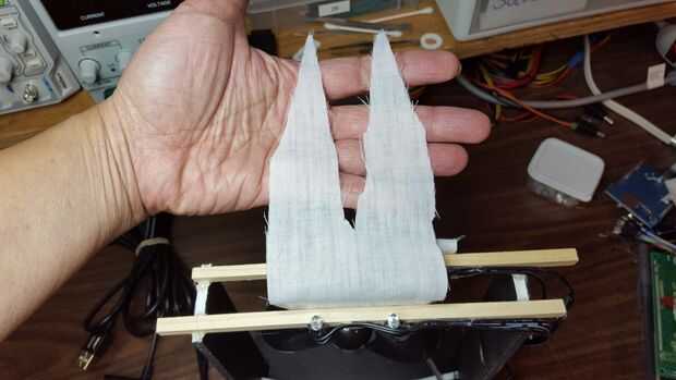 Todo lo que estamos intentando hacer es soplar la tela hacia arriba. La cosa más simple que pude pensar fue una base plana, dos pilares y un travesaño para sujetar la tela y los LEDs.