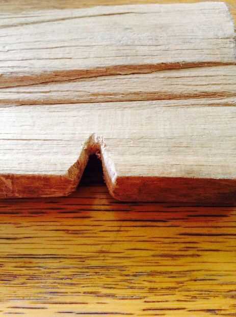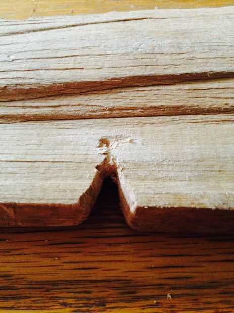 Ahora hacer una pequeña muesca triangular en el lado de la Junta como en la foto de arriba.