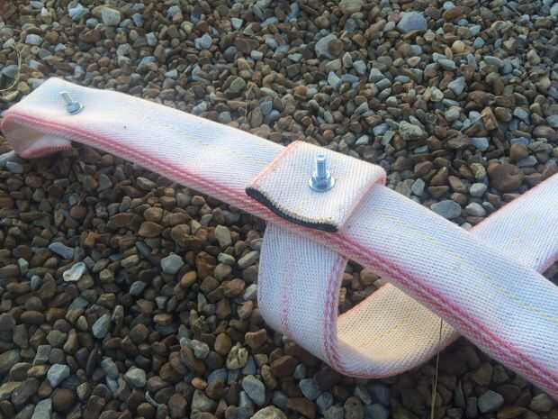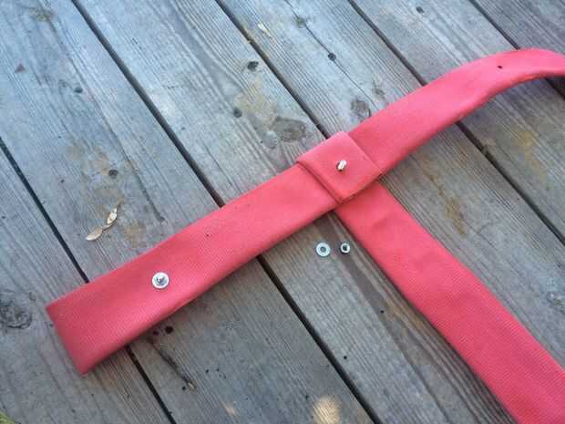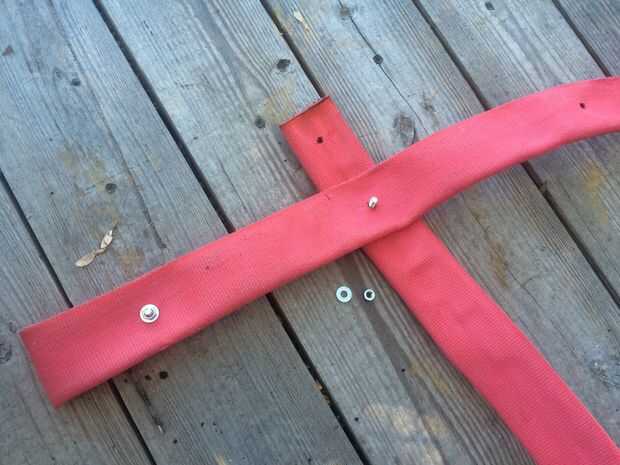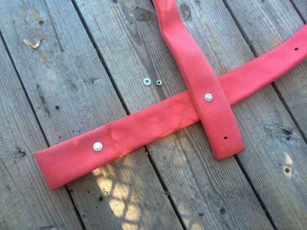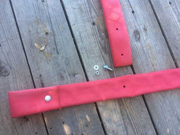 Montar la eslinga de la roca. La dirección que doblar y montar las diferentes piezas es algo cambiante. Recomiendo mirar un cabestrillo de rock ya montado para la dirección en cómo montar. Será mucho más claro que una explicación con tipos con un montón de medidas confusas. Añadir una arandela a cada lado de la manguera de fuego y simplemente mano apriete todas los tuercas y tornillos al montar. De esta manera si usted comete un error, va a ser mucho más fácil y rápido para desarmar y armar nuevamente.