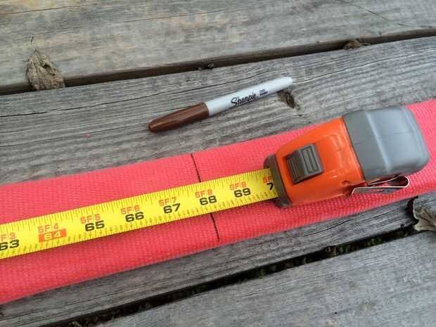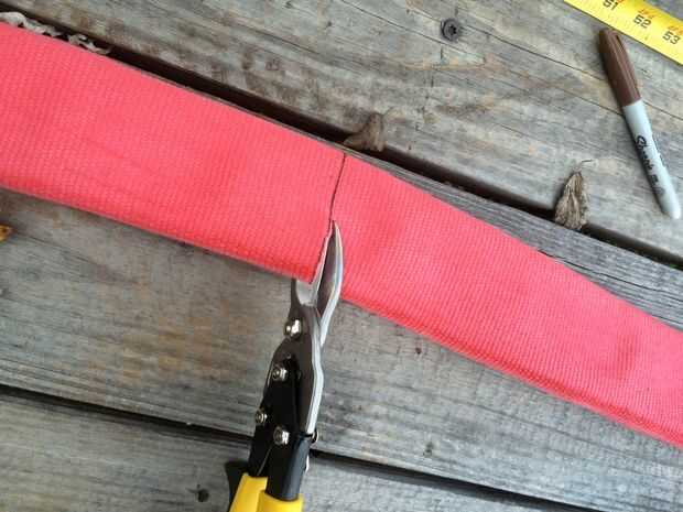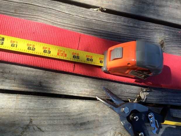 Corté tres 65" y cuatro 68" pedazos de manguera de fuego. Puede ajustar estas medidas si desea que su Honda roca para ser más grande o más pequeño. Las dimensiones finales de la eslinga cuando se corte a estas longitudes 52" por 57".