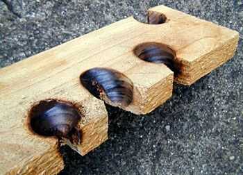 Esta pieza es un largo plano esencialmente. El eje es puesto en ella en un divet redonda tallada. Luego se aplica presión por el bloque del cojinete que un movimiento ocupa por el giro de la proa. Una vez que tienes el huso y el hogar "acoplado" o montado en uno al otro se talla una forma de v hacia el interior en la junta entre la divet quemado en, esto permite que el carbón a caer entre.