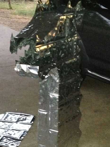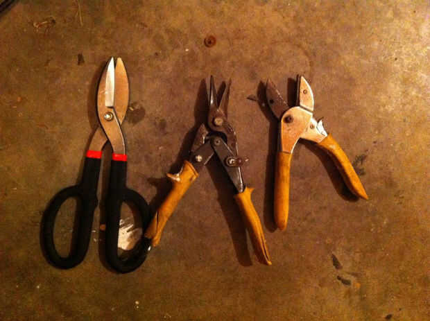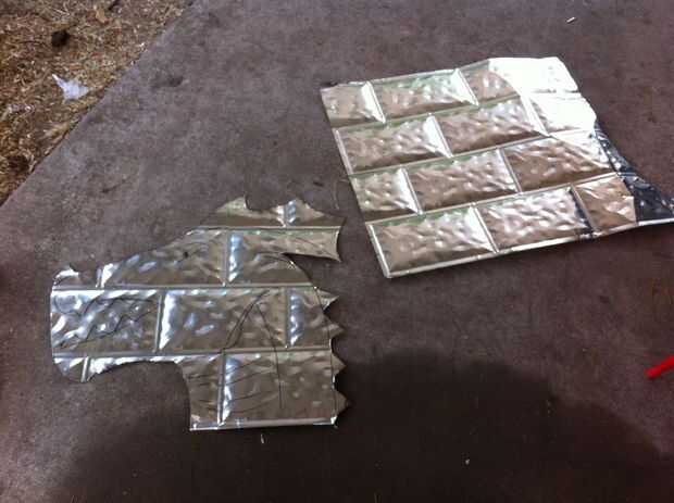Mi encantadora esposa trazó un esbozo de cabeza de un dragón, y usé pinzas para latas para cortar la cabeza y el cuerpo hacia fuera.