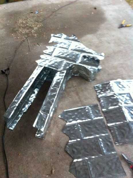 El cuerpo está hecho de lata. Usted puede comprar piezas de 3 x 4 pies en Homedepot o Lowes.