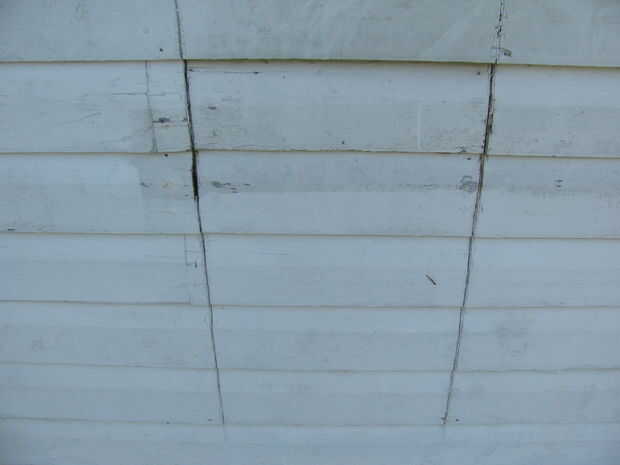 Básicamente, todo lo que hizo fue dibujar dos líneas verticales en la pared exterior, asegurándose de que estaban entre dos postes de madera pero justo al lado de un montante y aserrado hacia abajo de esa línea. Se utilizó una sierra circular, pero un sawzall trabajaría mejor probablemente. Puedes ver cómo fue cortado en la foto.