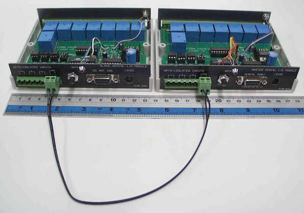 Sólo uno de los kits se conecta a la PC vía el puerto serial. Se trata de la principal unidad. No importa cual kit se conecta a la PC. Sin embargo, para facilidad de uso, los paneles frontales y traseros se numeran diferentemente para el maestro y esclavo así que tiene sentido para conectar el kit con la etiqueta ' amo "al puerto serie del PC.