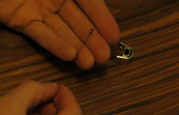 Lugar de pedernal dentro de un resorte en uno de los extremos. no es fácil porque todo es tan pequeño, y tiene que quedarse allí para siempre.