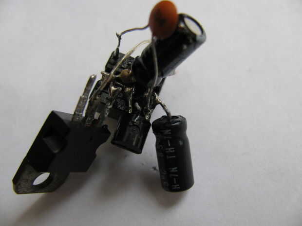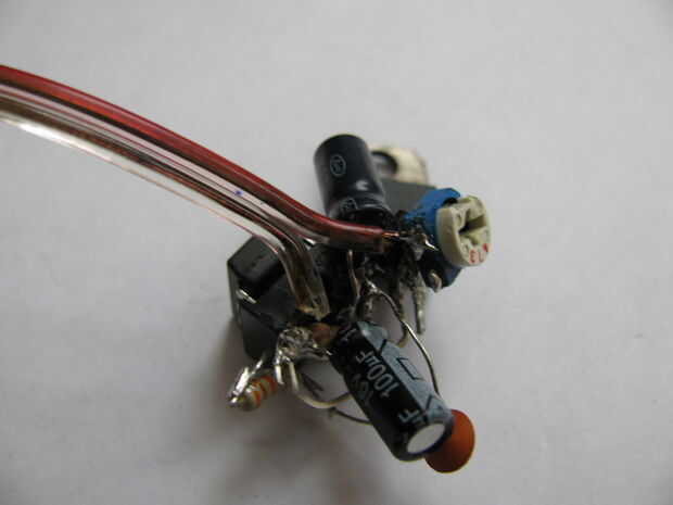 10. La soldadura de una de las patas del lado del potenciómetro de 50K 3.3uF electrolítico capacitor positivo poste.