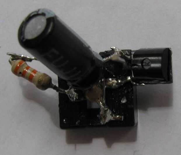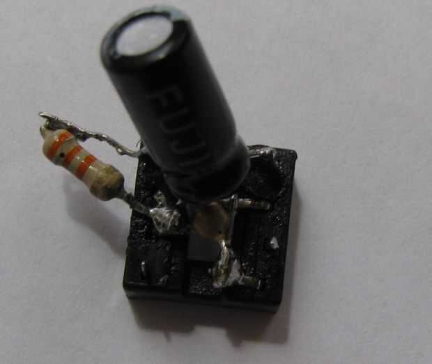8. La soldadura del condensador cerámico 100nF entre los pines 1 y 5 del zócalo del IC.