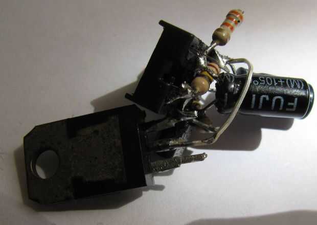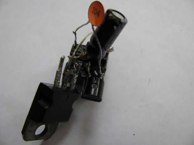 5. La soldadura del condensador electrolítico de 100uF entre los pines 1 (-) y 6 del zócalo del IC.