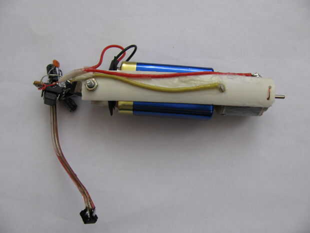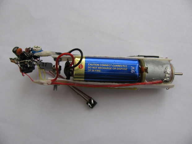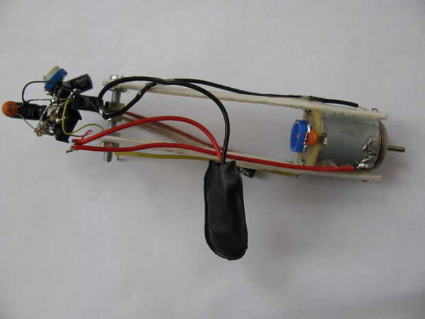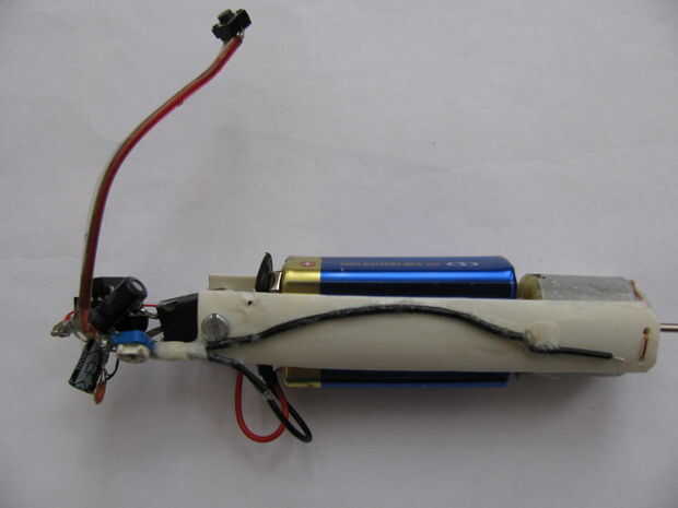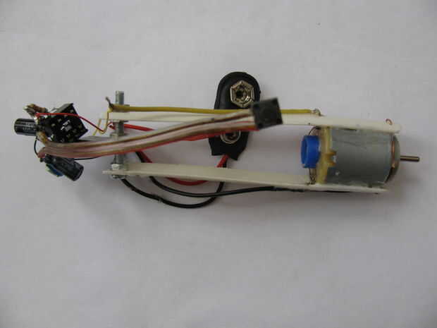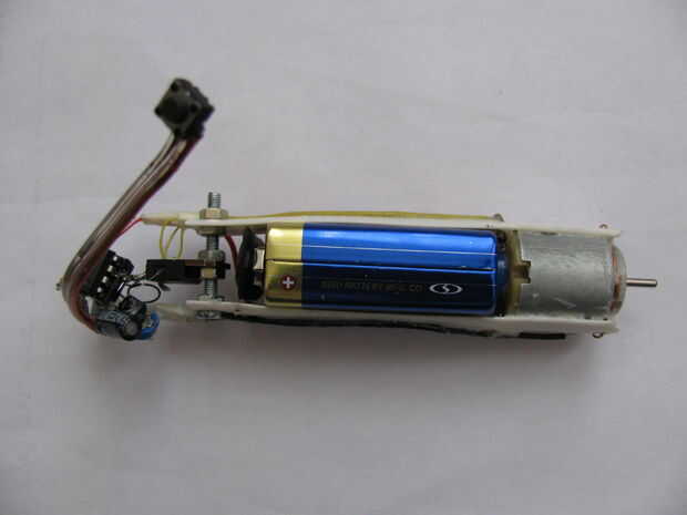 Coloque la pila entre el motor y circuito y fijarlo con cinta adhesiva si es necesario.