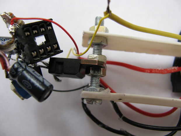 Conecte el circuito al otro lado de las tiras de plástico con un tornillo y tuercas.