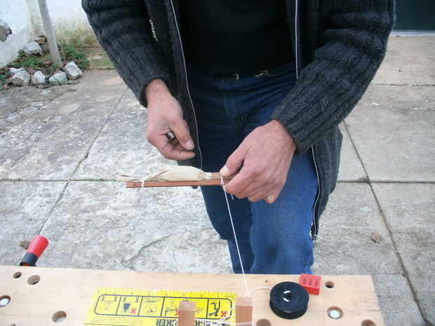 Uno de los extremos de la picadura debe ser anclado abajo. Utilizar cualquier tipo de cadena o acorde con que se siente cómodo. Lo mismo ocurre con el calibre.