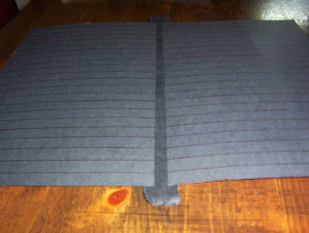cortar un trozo de cinta de hockey y deslícelo bajo el borde largo de la hoja hasta 1/3 de la forma en el lado del pegamento borde arriba (subsistencia él incluso)