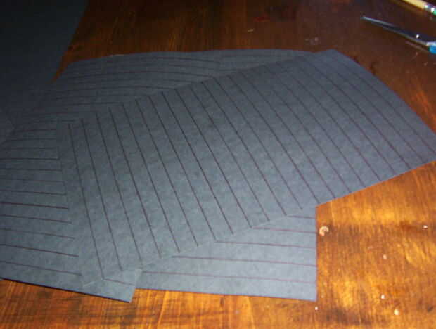 Repita este paso hasta tienes las cuatro hojas con un paño de 1/3 de pulgada conjunto entre cada uno. (Utilice cinta de 3/4 de pulgada para fuelle pequeño y 1/4 pulgadas).