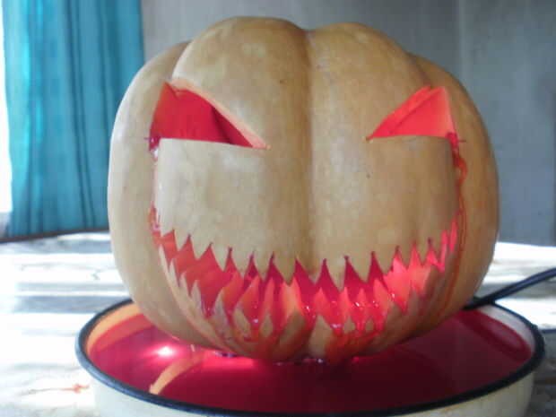 calabazas? ¿Sangre falsa? Debe ser casi Halloween. Tiempo para las decoraciones que hay... Esta es una guía rápida para hacer tu propia sangre babeo calabaza.Paso 1: Reunir algunas cosas para su cosa Necesita algunas cosas para empezar: un recipiente