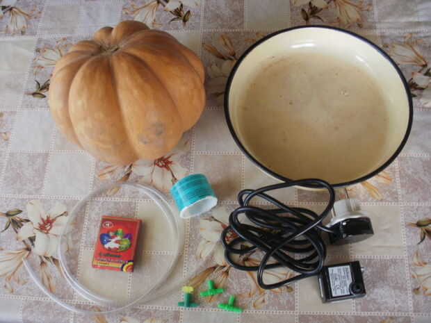 no soy mucho de un carver de lujo jack o linterna así que me gustaría añadir alguna tecnología para este año de la mina.Paso 1: suministros! El plan implica básicamente una bomba de agua alimentar agua coloreada para arriba a través de un tubo y de l