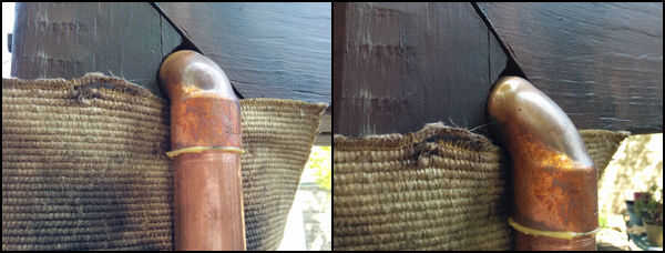Ahora que la soldadura del último tubo – aviso que hemos utilizado un escudo de llama para proteger la madera mientras se suelda. Si no quieres soldar, también hay resinas epoxi que se fabrican para tubos de cobre. Eso sería mucho más fácil, pero no hemos nunca usado, así que no que tan bien resistirá.