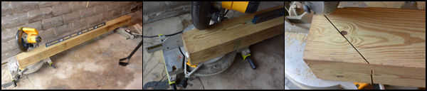 Será el tamaño final 65" de ancho x 80" de alta (este es el tamaño expuesto, recuerde que hay un adicional 16" altura enterrados en el suelo). Esto hace que nuestras vigas verticales 2 96" cada uno, y la viga horizontal es 65". Inglete las esquinas fue difícil, debido al tamaño de las vigas, así que esto es opcional. Si usted decide no Mitre, apilado a la viga superior en los verticales, se todavía se ven bien y ahorrar un poco de trabajo. Si haces esto, sin embargo, recuerde cortar 5 1/2" de las vigas verticales para compensar por la altura extra y para mantener la misma proporción de altura/anchura del producto terminado.