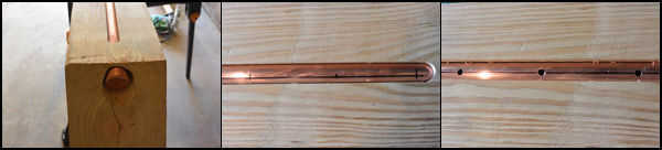 Inserte el tubo de cobre en viga. Luego perfore agujeros ¼" cada 1" de la tubería de cobre. Sople hacia fuera las virutas de metal y asegúrese de que dentro de la tubería está limpia. Una tapa en el extremo izquierdo de la tubería de cobre, la soldadura