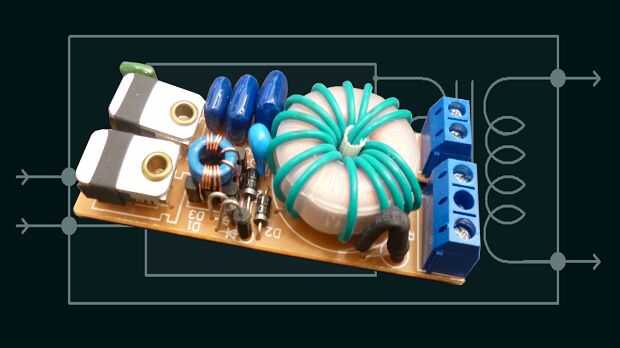 El peso es alrededor de 50g para una unidad de 60W. El tamaño es menos de 3 "x 1.5". En este enlace encontrará la descripción de un típico circuito: transformador .