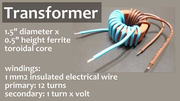 Núcleo del transformador puede ser toroidales o tipo EE . Material debe ser de ferrita. Frecuencia de salida es alrededor de 40 KHz (varía con la carga). Para una fuente, añadir una etapa del rectificador de onda completa / filtro / y tensión constante o regulador de corriente constante si es necesario. Usar diodos de recuperación ultra rápida. La serie 1N4000 no es adecuada para la conmutación de 40KHz. Utilice UF4000 serie 1 serie Amp o UF5400 de hasta 3 amperios.