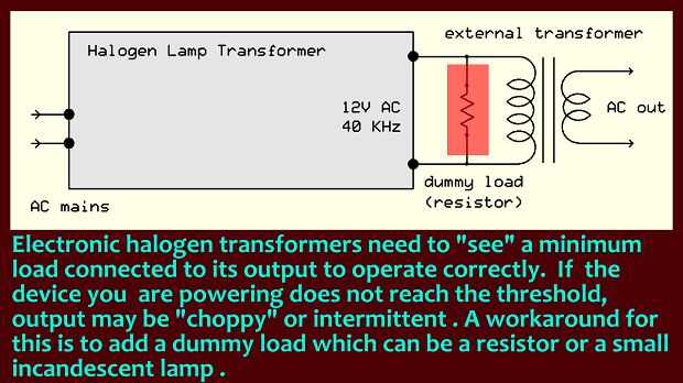 Transformadores electrónicos necesitan una carga mínima para funcionar correctamente, otra salida no será estable o incluso nulo. Si la carga de la aplicación es insuficiente, añadir una carga ficticia. Utilice una resistencia o una pequeña lámpara incandescente.