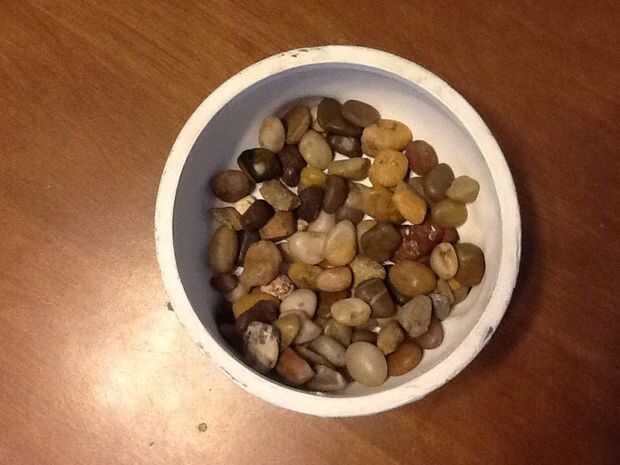 Tienes que poner unas pequeñas piedras en el fondo de la olla. Lo suficiente para cubrir el fondo. Cubre la parte inferior y luego algunos más capas para asegurarse que la bomba un poco fue más elevada porque no quiero tener que usar un tubo. Si tiene tubo y no le importa usarlo sólo necesitas 1 capa. El único inconveniente de poner más piedras en el fondo es que necesita más agua.