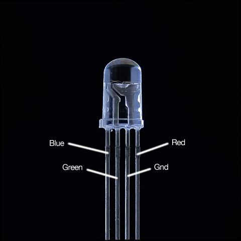 También utilizamos cuatro LEDs tri-color para nuestra fuente. Uno de estos LEDs se compone de cuatro patas. La primera es una pata roja que está conectada a una fuente de tensión y controla que la cantidad de sombreado de rojo en la luz. En segundo lugar es una pierna que va a tierra. El siguiente es una pata verde que está conectada a una fuente y controla la cantidad de sombreado verde. El último es la pierna azul, que va a una fuente de tensión y controla la cantidad de azul en el LED. El rojo tiene una caída de tensión de 2 V, mientras que el verde y el azul tienen una caída de voltaje de 3.2 V cada uno. Una vez más, sabiendo que el Arduino puede suministrar hasta 5 V y puede tomar un máximo de 25 mA, calculamos que necesitamos una resistencia de 150 Ohm para una resistencia de 100 Ohm para el verde y el azul y rojo. Estas resistencias fueron soldadas en la pierna correcta, y un alambre fue soldado en el otro lado de la resistencia y en el chasis de protección. Un alambre fue soldado en la pierna de tierra y provocaron el chasis al puerto de tierra del Arduino.