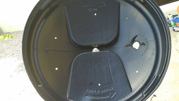 Uso 1" poco y electeic taladro para perforar el agujero en el centro de la tapa lo suficientemente grande para fuente de alimentación a través de.