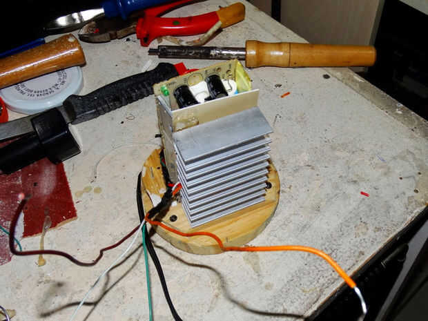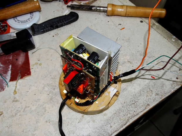 Allí hice doble poste de alimentación de atx fuente de alimentación de computadora. Se da + 27v ant-27v, entre + 27 y -27 hay + 52v. Desoldar la mayoría de circuitos de baja tensión y poner 3 resistencias y par de cables de puente. También quité el c