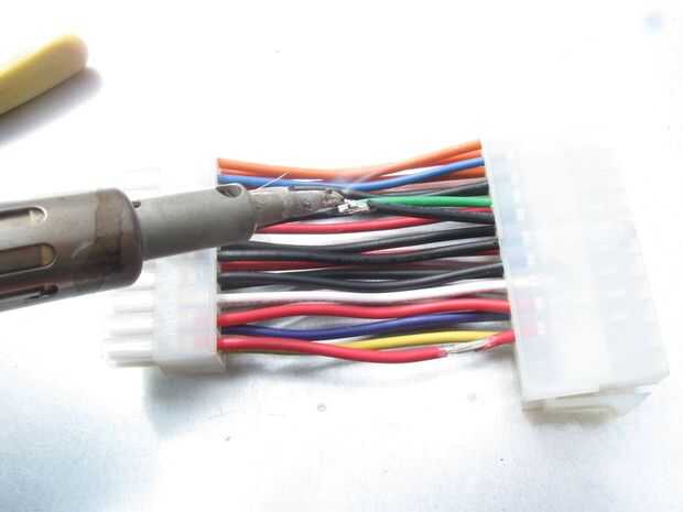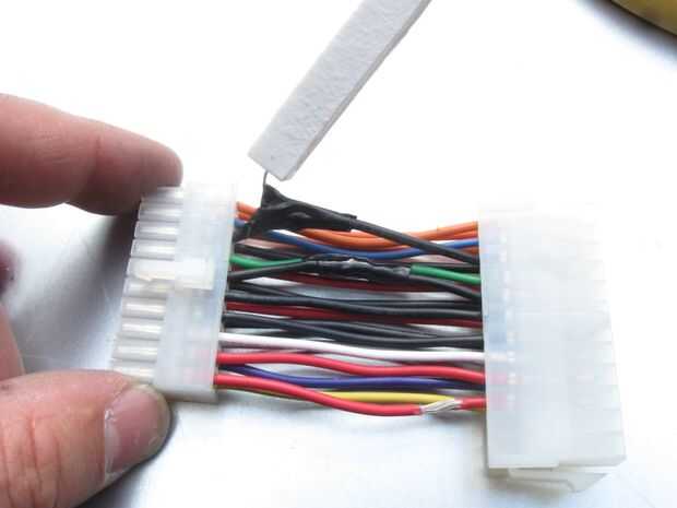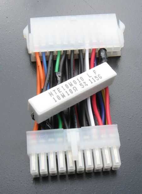 Solde un resistor de potencia entre un cable rojo y cable negro entonces cubrir los empalmes de la soldadura con cinta aislante.
