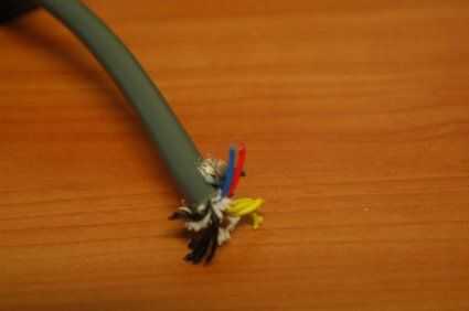Paso 2: Tomar el cable que corte el ladrillo de la energía y tira de unos 15cm (6')' del aislante gris de exponer 8 cables dentro: 3 black(ground), 3 yellow(+12v), 1 red(+5v) y 1 azul. Unos 10cm (4) de aislamiento de cada uno de los cables excepto el cable azul de la tira! EL azul cable es utilizado por la Xbox 360 para "Hablar" a los 360 ladrillo de la energía, entonces tuerza los cables negros 3. Luego hacer lo mismo con los cables amarillo.