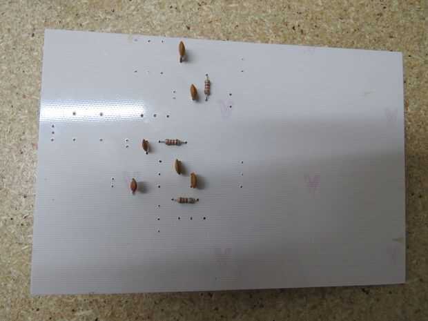 Capacitores cerámicos de 100 nF (o 0.1 μF). Es el tiene impreso el número 104. Este código significa 10 x 10 ^ 4 pF, equivale a 100 nF, μF o 0.1). Los capacitores cerámicos no tienen polaridad.