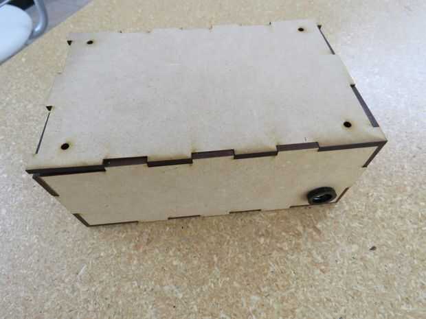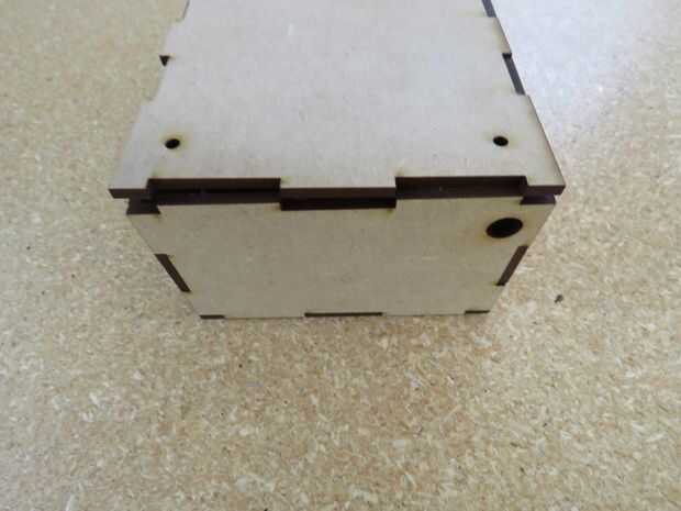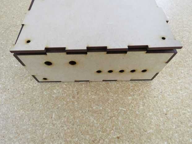 Este paso es opcional. Si decidiste emplear el archivo para fabricar el gabinete con corte láser, es el momento para armar la caja (recuerda puedes descargar el archivo para fabricar las piezas del gabinete en la introducción de este Instructable). Si decidiste emplear algún otro gabinete, es el momento de prepararlo para colocar los componentes, es probable que requieras realizar algunas perforaciones.