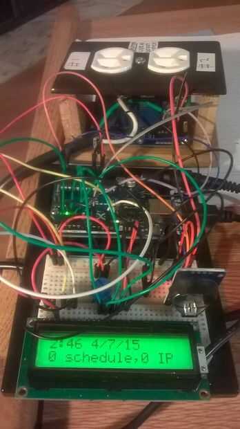 Hace un tiempo me encontré y se inspiró para hacer uno propio, que puede llamarse una variante mejorada de la unidad de maewert. Sin embargo, he escrito programas para Arduino y cliente de modo que usted puede emitir el comando como ' programador -t -d 15/7 14:00 -l 1h20m -p 1' desde el cliente a hacer Arduino deje alimentación (alterna) caudal al receptáculo de #1 a 14:00 durante 1 1/3 hora.