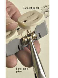 Ahora corte el cable de extensión tal que el macho ha deseado longitud del cable conectado (3 pies debe ser suficiente para uso en interiores). Franja de unos 10 cm de la envoltura externa de los cables desde el extremo del cable. Romper el puente que conecta los terminales vivo junto con los alicates (en los E.E.U.U., con tornillo de bronce) como se muestra aquí