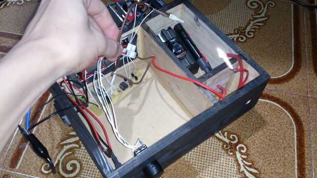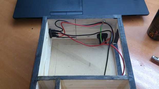 También Coloque un conector de corriente y un interruptor a la caja y ellos, es muy importante utilizar tubo termo retráctil u otro tipo de protección cuando realice las conexiones con la red de alambre, no quieren conexiones expuestas. Enrosca la conexión a tierra para el caso en caso de que quiero algo de alambre luego y así no se mueve.