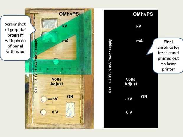 La primera imagen muestra el diseño de la etiqueta. La página impresa de láser fue pegada en el panel frontal . La etiqueta de especificaciones fue pegada en el panel trasero . El exterior de la caja abierta por un lado y el panel del lado izquierdo separado fue pintado con pintura acrílica negra. El interior del papel de área cubierta y los paneles marcados fueron cubiertos con barniz acrílico.
