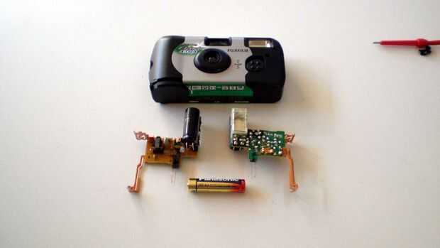 That´s por qué me senté y trató de averiguar mi mejor solución. Tengo que decir que I´m no muy bueno para trabajar con electrónica y también puede dibujar el circuito de la electrónico de la cámara de eliminación pero yo puedo mostrar ahora exactamente donde tienes que soldar los cables a la luz un parpadeo vela bombilla, un tubo de cfl, tubo del NIXIE o una bombilla de neón Glow con el sólo uso de una batería de 1,5 voltios. He probado muchos tipos de cámara de eliminación diferentes (Agfa, Kodak, Fujii) y llegó a la conclusión que los de Fujii funcionan mejor. Desde entonces siempre utilizo solamente la electrónica de las cámaras de eliminación Fujii.