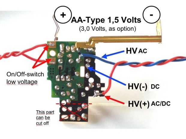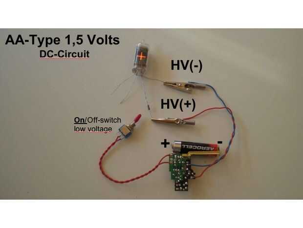 El tubo NIXIE funciona mejor con un alta tensión-circuito de CC (un contacto después del diodo) y como fuente de 1,5 voltios.