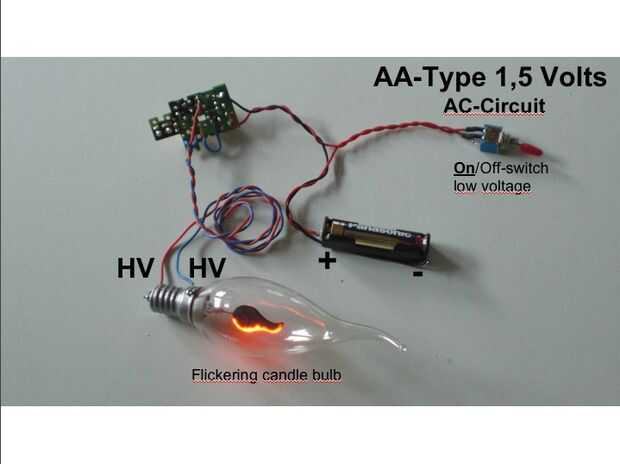 Usted puede conducir una clásico Bombilla vela parpadeante (llenada de gas neón) en un alto voltaje AC-circuito (un contacto antes del diodo)