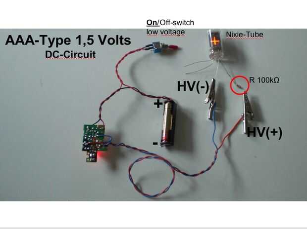 o un tubo de NIXIE en un alta tensión-circuito de CC (un contacto después del diodo)
